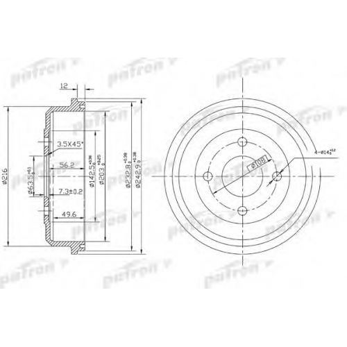 PDR1533 PATRON Тормозной барабан
