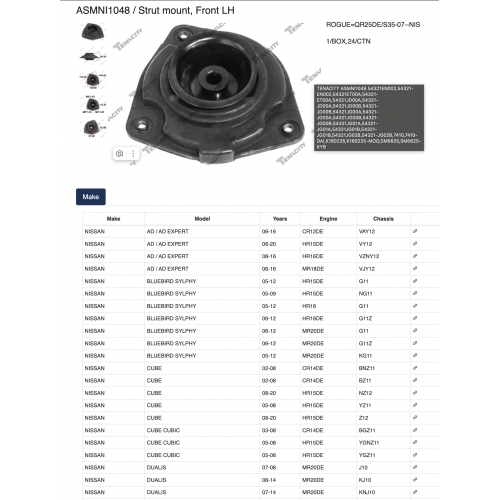 ASMNI1048 Tenacity Опора амортизатора